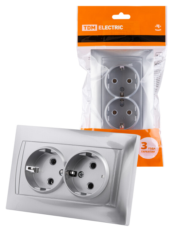 Розетка двойная 2П+З 16А 250В серебр. металлик "Лама" TDM (кр.6шт)