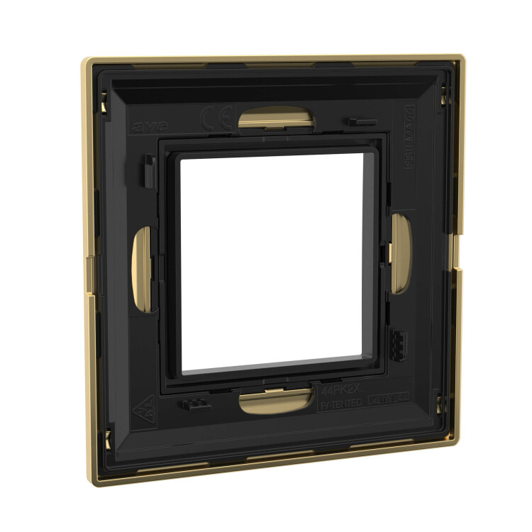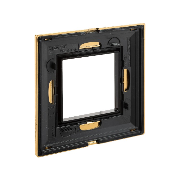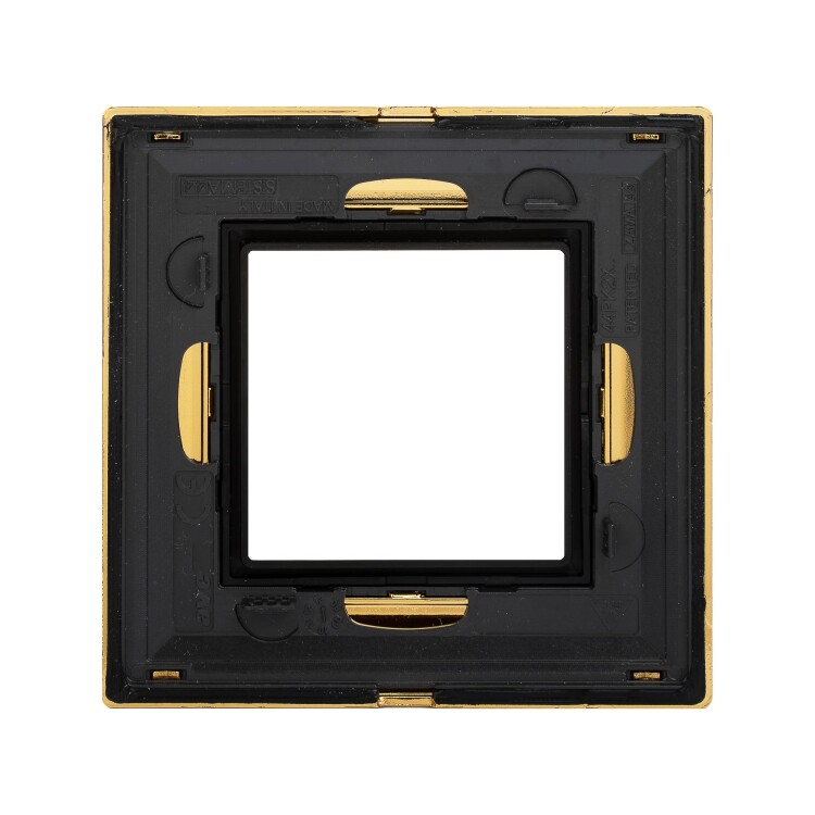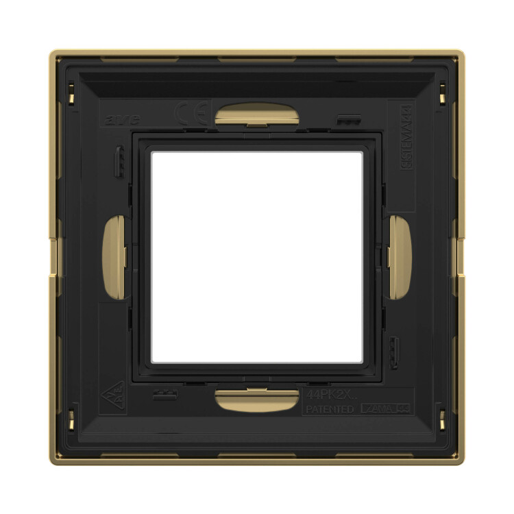Золотистая рамка из металла для настенного монтажа. Назначение: декоративное оформление серии "Avanti"; монтаж в стену на каркас ЭУИ "Avanti" (код 4400802). Дизайн разработан Luca Mertelli. Материал – металл. Покрытие – порошковая краска. Кол-во модулей: 2