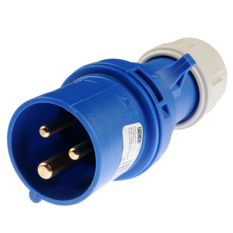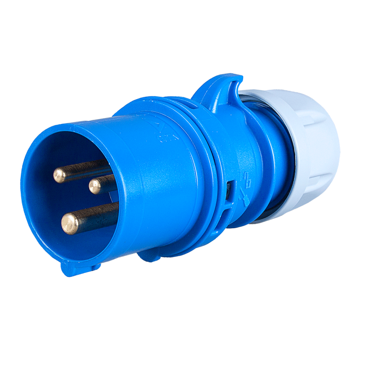 IP44 вилка кабельная силовая "Twist". Цвет корпуса голубой. 230V, 50/60Гц. 3 контакта. Сила тока 16А.
