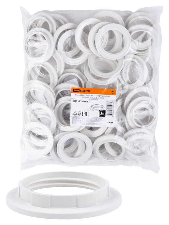 Кольцо для патрона Е27, термостойкий пластик, белый, Б/Н TDM (кр.50шт)