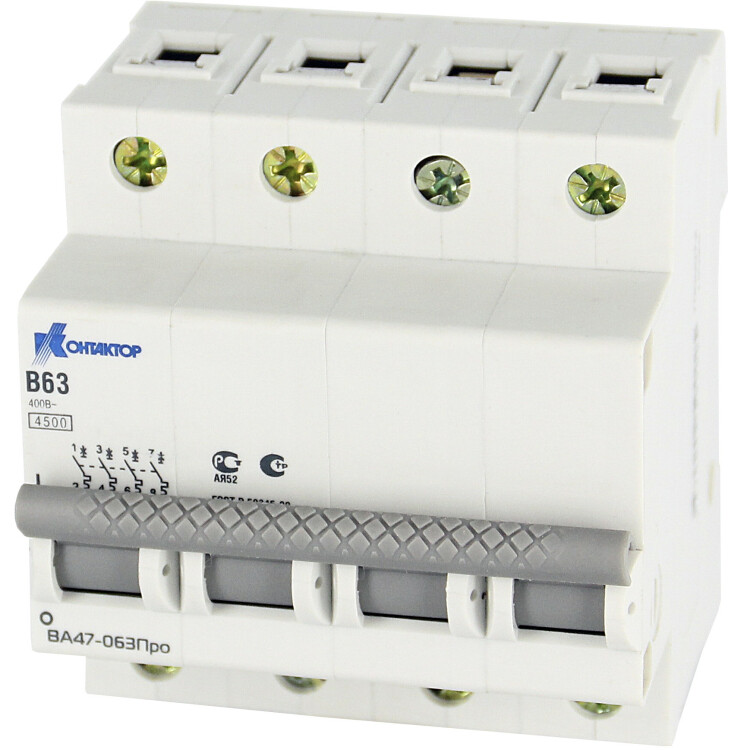 Автоматический выключатель ВА47-063, 4P, 1A, Icu-4,5kA, х-ка С