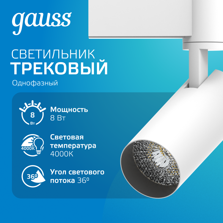 Светильник трековый Gauss цилиндр 8W TR077 с углом освещения 36° и цветовой температурой 4000K - замечательный пример универсальности и мобильности современных средств освещения интерьера. Он не искажает цветовосприятие, не слепит окружающих. Направляя луч света в строго определенную зону, спот позволяет уединиться за письменным столом, журнальным или туалетным столиками, не мешая при этом остальным членам семьи отдыхать или смотреть телевизор. Может быть включен в трек систему Gauss для более полного освещения квартиры или любых сухих (IP 20) коммерческих помещений.