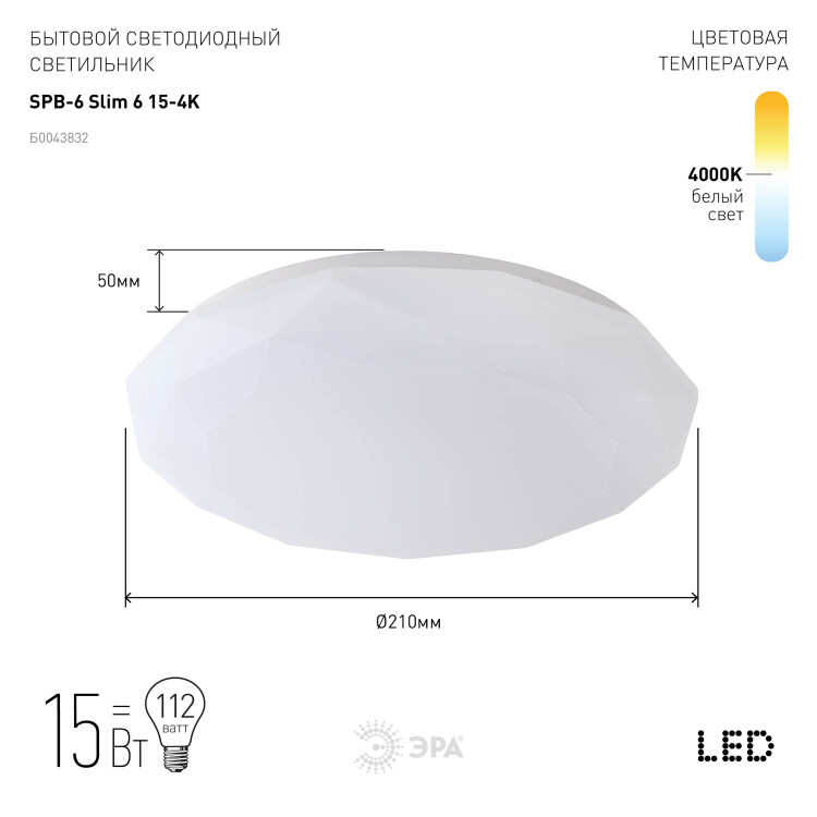 Благодаря мощности 15 Вт и сроку службы 30 000 часов электросветильник SPB-6 "Slim 6" будет радовать Вас долгое время. Создайте оригинальный дизайн вместе с люстрой от бренда ЭРА.