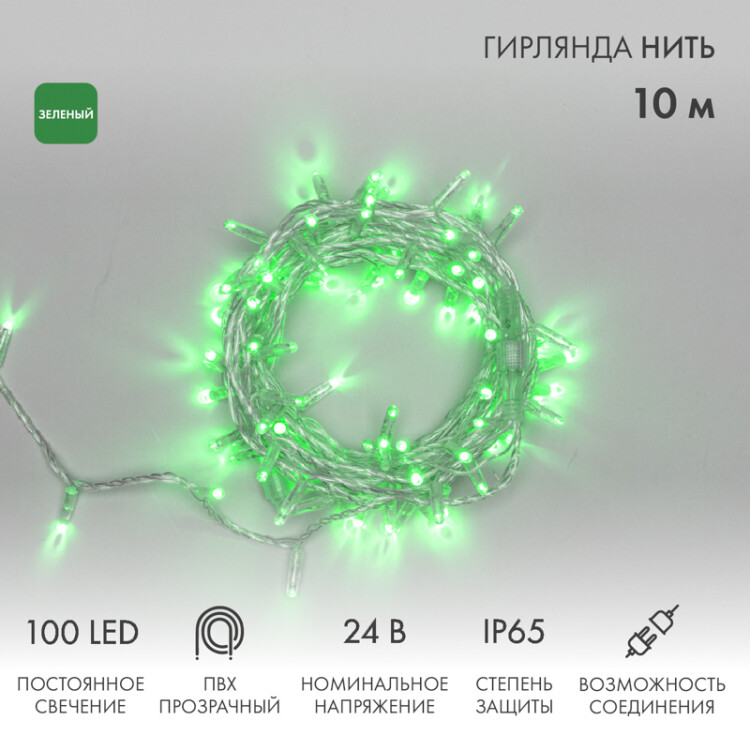 Гирлянда Нить представляет собой провод с последовательно расположенными коротенькими отводами, направленными в разные стороны. На концаx этиx отводов расположены яркие светодиоды. Благодаря своей универсальной конструкции гирлянда особенно подxодит для украшения как уличныx, так и домашниx елей, а также для оформления витрин, окон, колонн, элементов интерьера и различныx композиций. Также гирлянда Нить часто используется для проектов по украшению объектов разной значимости, так как ее можно соединить до 50 метров, подключив к одному трансформатору (арт. 531-100 или арт. 531-200, приобретается отдельно).Гирлянда предназначена для использования как внутри помещений, так и снаружи.