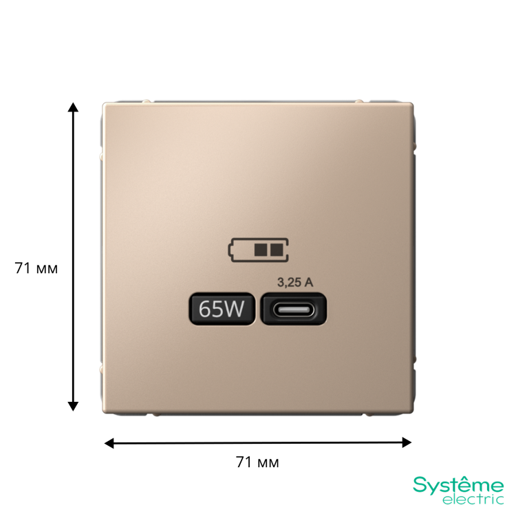 Розетка Systeme Electric серии ArtGallery в цвете песочный USB с разъемом типа C высокоскоростная.