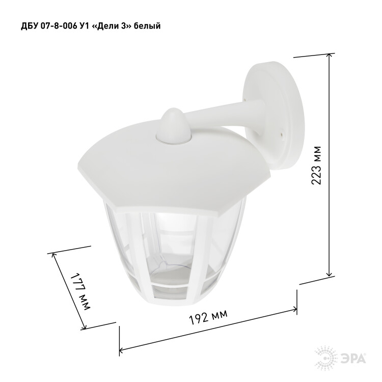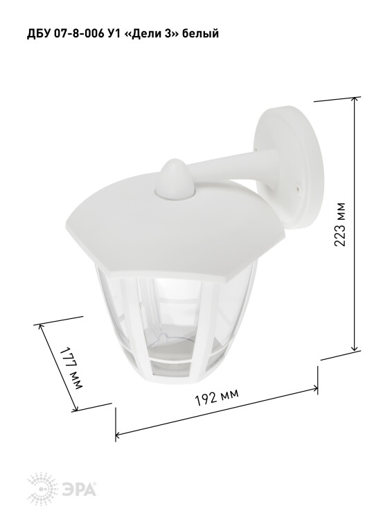 Садово-парковый светильник ЭРА ДБУ 07-8-006 Дели 3 белый 6 гранный настенный IP44 светодиодный 8Вт 6500K (кр. 1шт)