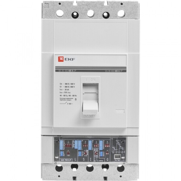 Выключатель ВА-99 выполнен в виде моноблока и состоит из основания и крышки с фальшпанелью, в которой имеется окно для рукоятки управления и толкатель кнопки «Тест» - проверки механизма отключения выключателя. Основание выполнено из термостойкой пластмассы, не поддерживающей горение и являющейся несущей конструкцией для присоединительных зажимов, неподвижных и подвижных контактов с системой дугогашения, механизма управления, блока защиты от сверхтоков. Крышка закрывает все подвижные элементы механизма управления и внутренние токоведущие части.