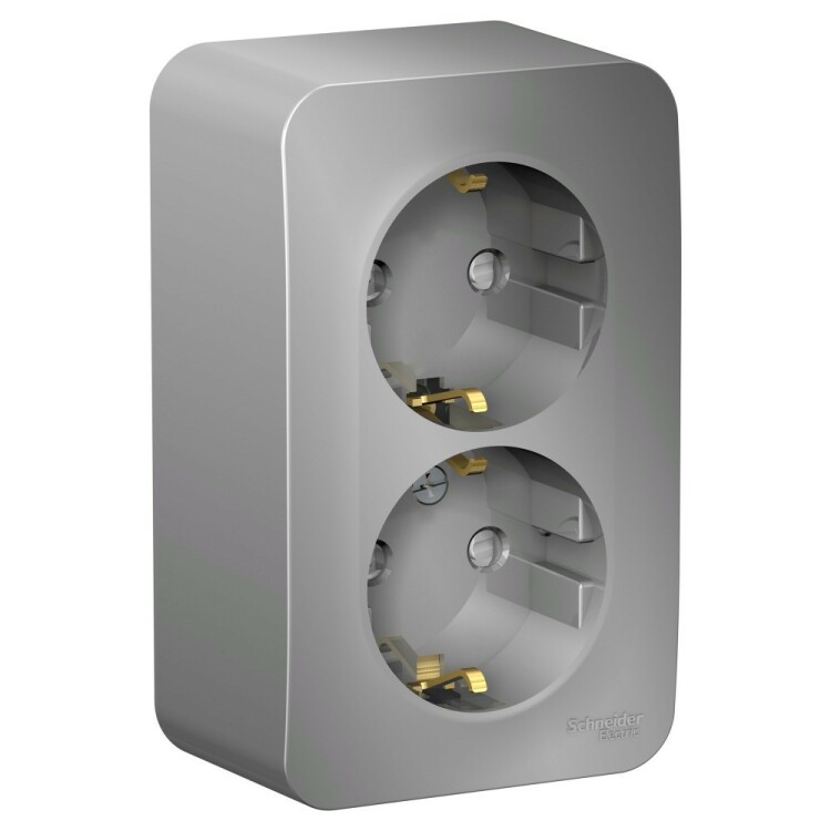 Розетка Systeme Electric (ранее Schneider Electric) BLANCA (алюминий, открытой установки) двухместная, с заземлением, шторками предназначена для сетей до 250В, на ток до 16А. Двухместная розетка позволяет подключить два устройства в одном месте. Шторки и заземление обеспечивают дополнительную безопасность. Корпус изделия выполнен из ABS-пластика.