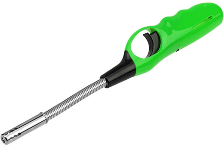 Бытовая газовая пьезозажигалка с классическим пламенем многоразовая (1 шт.) зеленая СК-302W с гибким стержнем СОКОЛ (кр. 1 шт)