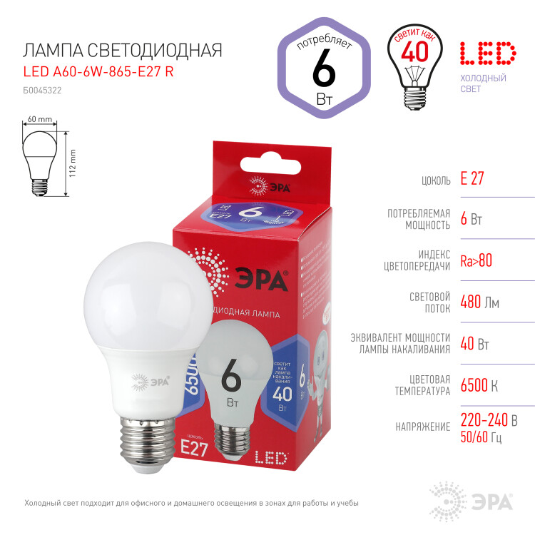 Экономичная светодиодная лампа ЭРА Серии Бюджет с отличными характеристиками для установки в люстры и все типы бытовых светильников - потолочные, настольные, бра. Бережёт электроэнергию, ярко светит, имеет долгий срок службы. Цветовая температура - холодный белый свет. Такое освещение бодрит, повышает работоспособность. Этот современный источник света создаёт комфортное и безопасное для глаз освещение.