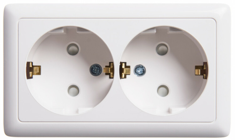 Розетка Systeme Electric (ранее Schneider Electric) ХИТ (открытой установки, цвет белый) двойная с заземлением, шторками, с изолирующей пластиковой пластиной предназначена для сетей до 250 В на ток до 16 А. Двойная розетка позволяет подключить два устройства в одном месте. Шторки обеспечивают дополнительную безопасность в доме, где находятся дети. Заземляющий контакт обеспечивает дополнительную защиту от удара электрическим током. При наличии заземления электрический потенциал уходит в землю, защищая человека. Сделано в России.