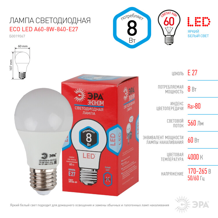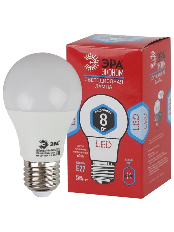 Эта светодиодная лампа ЭРА Серии Бюджет - современный, качественный и доступный источник света. Позволяет экономить до 90% электроэнергии по сравнению с лампой накаливания с аналогичным световым потоком. Светит ярким белым светом, который максимально приближен к естественному дневному. Идеальна для ежедневного применения в быту. Мгновенное включение. Ровное освещение. Можно использовать как с люстрами, так и со светильниками, в том числе настольными и бра.