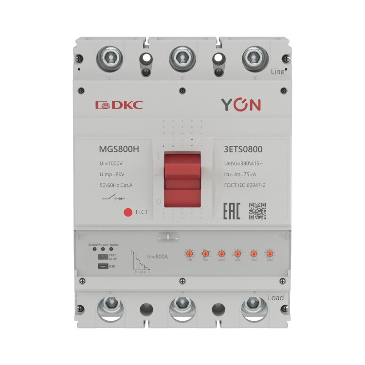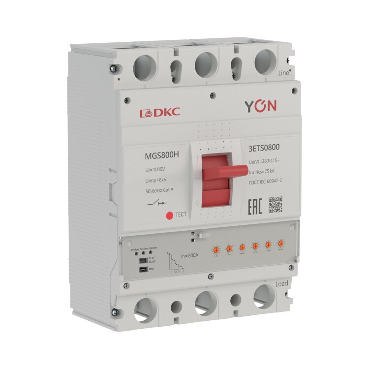 Автоматический выключатель в литом корпусе «YON макс» (YON max) MGS800H-3ETS0800 со значением номинального тока In 800 А и отключающей способностью Ics 75 кА применяется в сетях низкого напряжения до 415 В. Аппарат используется для рабочих включений и отключений нагрузок и для защиты от перегрузок и коротких замыканий. Автоматические выключатели в литом корпусе «YON макс» (YON max) серии MGS используются при строительстве и модернизации многоквартирных жилых комплексов, административно-коммерческих центров и объектов социальной инфраструктуры. Преимуществами серии MGS являются регулируемый электронный расцепитель, разнообразие ассортимента для реализации любого проекта электроснабжения, надёжная защита и долговечность, удобный монтаж и гарантия производителя 5 лет