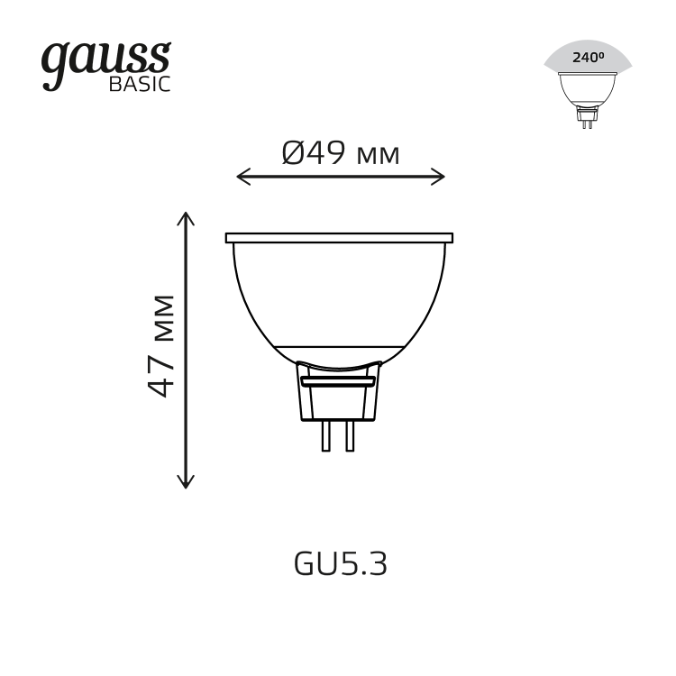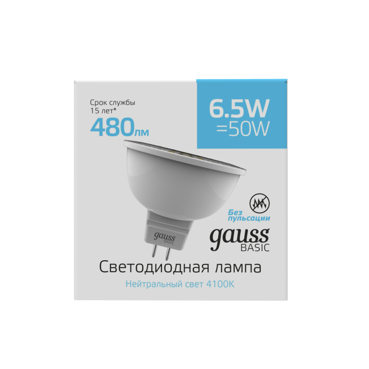 Лампа Gauss Basic MR16 создает яркое и приятное световое излучение температурой 4100К с пучком в 120 градусов, наполняющее окружающее пространство ощущением легкой бодрости и готовности к предстоящим делам.
