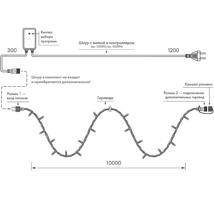 Светодиодная нить Pro. Размер 10000 мм. Цвет свечения RGBY, 100 светодиодов размером 7 мм с динамическими и статическими эффектами свечения с резким световым рисунком (прозрачная вогнутая линза). Смена эффектов и управление осуществляется с помощью контроллера с пультом. Провод темно-зеленый, каучук. Питание 230 В, Мощность 7 Вт, защита IP65, применение в помещении и на улице под навесом. Аксессуары для подключения и управления приобретаются отдельно.