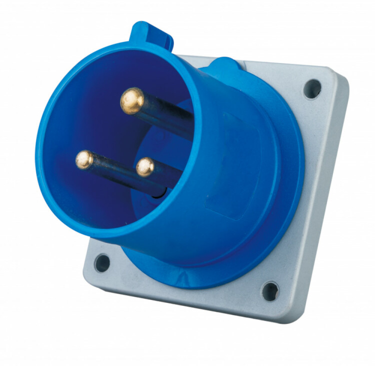 Вилка для скрытой проводки серии ВЩ-103 Dekraft, номинальный ток 16 А, диапазон рабочего напряжения 200-250 В AC, степень пыле-влаго защиты IP44, количество полюсов 2Р+РЕ, код CEE 613.