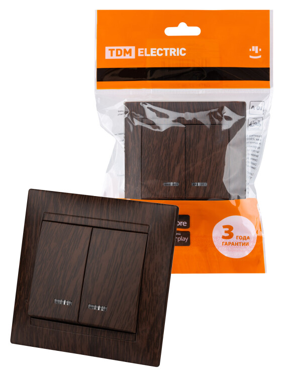 Выключатель 2 кл. с подсветкой 10А венге "Лама" TDM (кр.10шт)