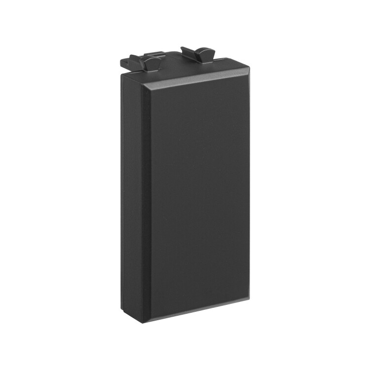 Заглуш ка модульная применяется в тех случаях, когда планируется установка дополнительных электроустановочных изделий на стену или в кабель-канал, но само изделие пока не установлено. Заглушка закрывает свободное место (1 модуль), сохраняя эстетику ЭУИ. Материал заглушки – пластик. Заглушка подбирается под цвет электроустановочных изделий. Эта модель имеет цвет "Черный матовый" – насыщенный темный оттенок, который легко сочетается с другими цветами и фактурами.