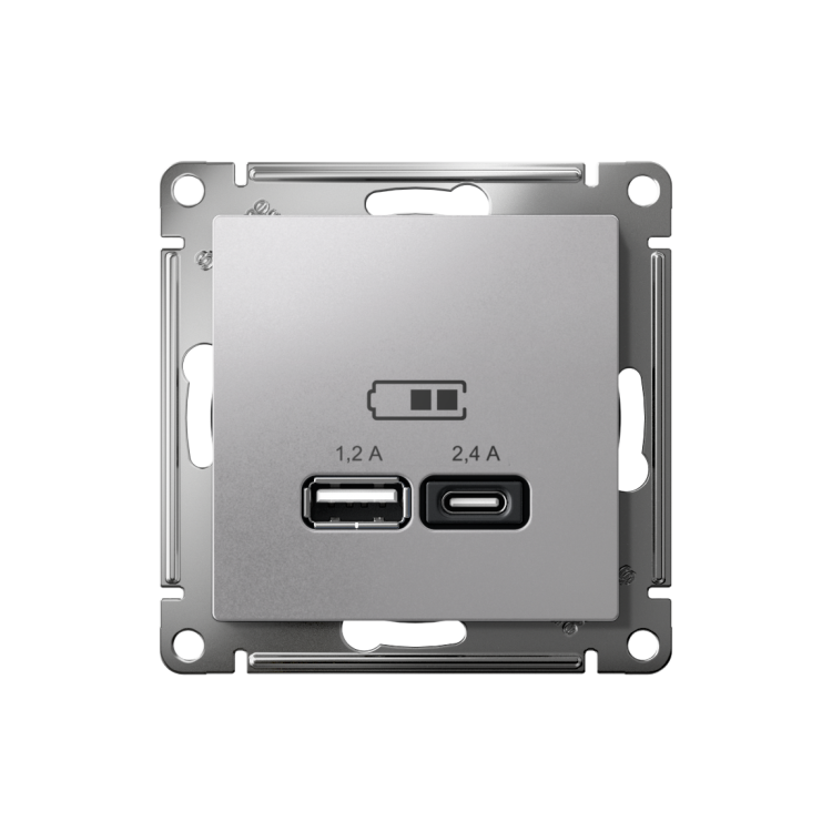 Розетка Systeme Electric (ранее Schneider Electric) серии AtlasDesign в цвете алюминий двойная USB с разъемами типа A+C. Лицевые детали из качественного ABS-пластика, устойчивого к царапинам и УФ-излучению. Самая современная USB-зарядка с двумя разъемами позволяет заряжать как стандартные мобильные устройства через разъем типа А, так и новейшие устройства, в том числе ноутбуки, с разъемом типа С. (ранее Schneider Electric ЭУИ UNICA NEW NU501830)