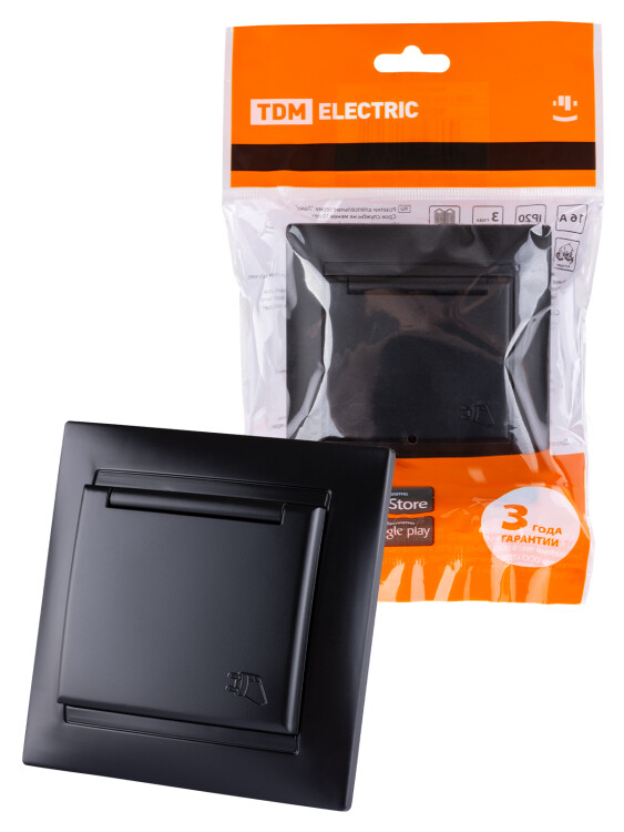 Розетка 2П+З 16А 250В IP44 с защ. шт. с крышкой графит "Лама" TDM (кр.10шт)