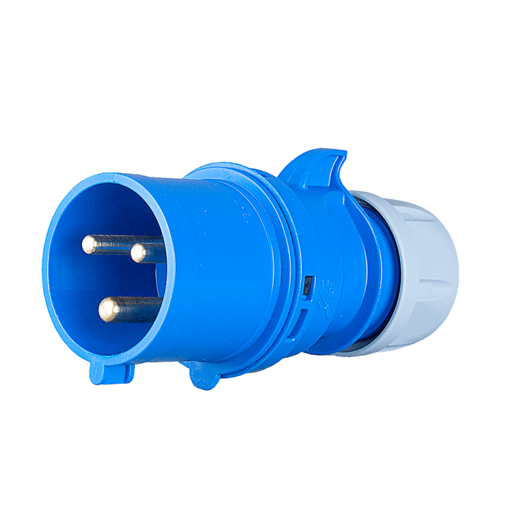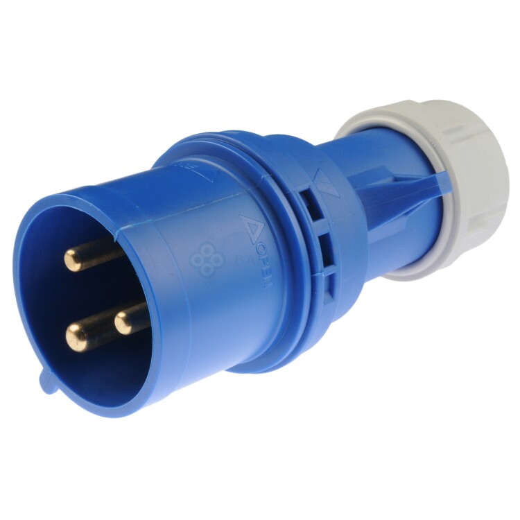 IP44 вилка кабельная силовая "Twist". Цвет корпуса голубой. 230V, 50/60Гц. 3 контакта. Сила тока 32А.