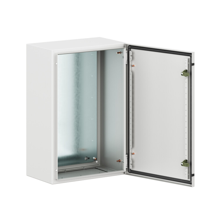 Навесные корпуса ST Outdoor предназначены для систем автоматизации и распределения электроэнергии, эксплуатирующихся вне помещений и под открытым небом. Корпус, фланец изготавливаются из стали толщиной 1,2 мм, дверь из стали толщиной 1,5 мм с грунтовкой, наносимой методом катафореза, и атмосферостойким порошковым покрытием, цвет RAL7035. Литой уплотнитель двери и фланца - вспененный силикон. Монтажная плата - из оцинкованной стали толщиной 1,8 мм. Степень защиты IP66, ударопрочность IK10, сейсмостойкость 9 баллов по шкале MSK-64, климатическое исполнение УХЛ1, ОМ1, Т1, группа горючести Г1. Диапазон температур эксплуатации от -70 до +90 °С. Комплект поставки: корпус, дверь реверсивная, монтажная плата с двунаправленной разметкой, дверные рейки, поворотный замок 2 шт., сплошной фланец для ввода кабеля 1 шт., комплект заземления без проводов, монтажные аксессуары. Габариты 600x400x250 (ВхШхГ) мм.