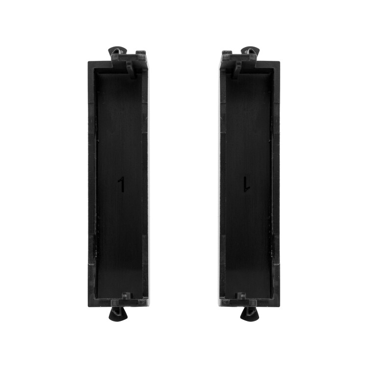 Компле кт модульных заглушек. Назначение: для монтажа в систему пластиковых кабельных коробов «In-liner Front» и систему организации рабочих мест «Сотто» (Sotto) (в т. ч. кабель-каналы и короба «Aero») при помощи рамок-суппортов и каркасов «Avanti» (код 4400912 и т. д.). Используется для вывода и фиксации кабеля. Количество модулей: 0,5. Количество в упаковке: 2. Цвет: «Чёрный матовый».