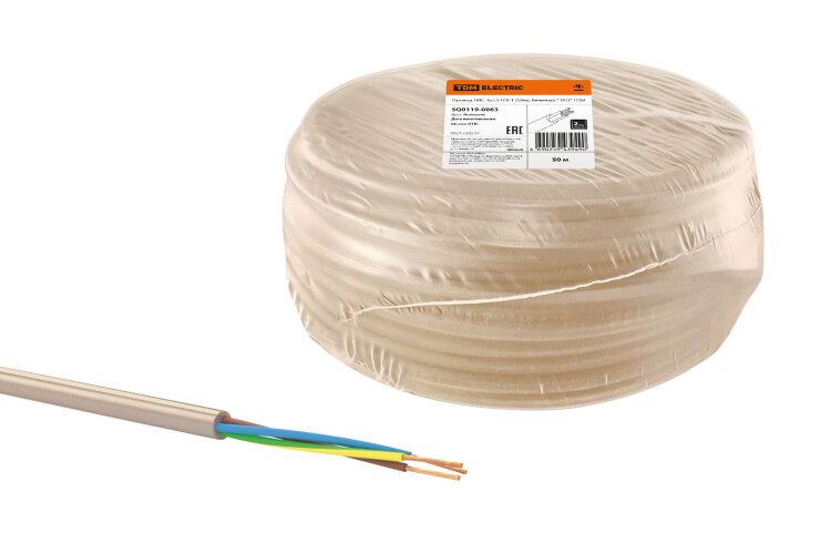 Провод ПВС 3х2,5 ГОСТ (50м), бежевый "ЭКО" TDM (кр.50м)