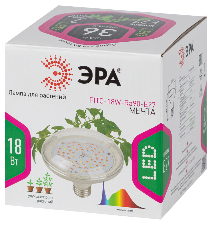 Фитолампа гарантирует результат даже в условиях полного отсутствия естественного света. Можно применять в закрытых гроубоксах, на затемнённых стеллажах, в подвалах, подсобках. Высокий коэффициент цветопередачи не искажает естественные цвета подсвеченных растений, что даёт возможность объективно оценить внешний вид листьев и плодов. Корпус новой фитолампы ЭРА выполнен из алюминия. Это обеспечивает хороший теплоотвод, минимизирует нагрев светодиодов. Прозрачный рассеиватель транслирует световой поток на 30-60% выше по сравнению с матовым.