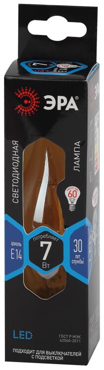 Лампочка светодиодная ЭРА F-LED BXS-7W-840-E14 gold Е14 / Е14 7Вт филамент свеча на ветру золотистая нейтральный свет (кр. 1шт)
