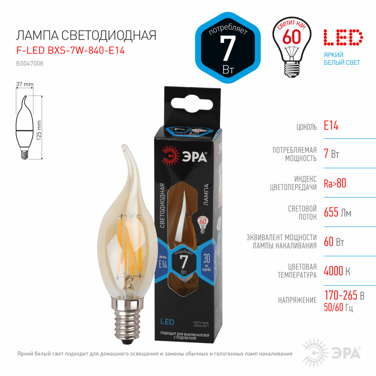 Светодиодная лампа серии F-LED. Лампа премиального сегмента. Максимально похожа на лампу накаливания, может использоваться в дизайнерских интерьерах. Угол рассеивания светового потока: 360 градусов. Совместима с выключателями с подсветкой.