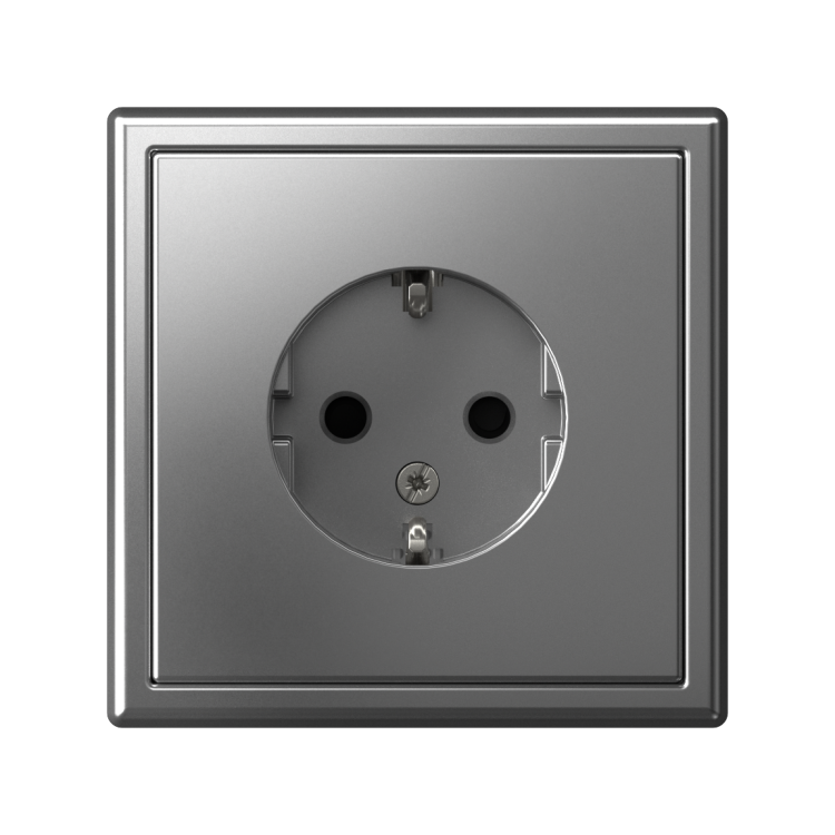 Механизм Systeme Electric серии ArtGallery в цвете сталь розетки одинарной с заземлением и шторками подходит для сетей 250 В, на ток 16 А.