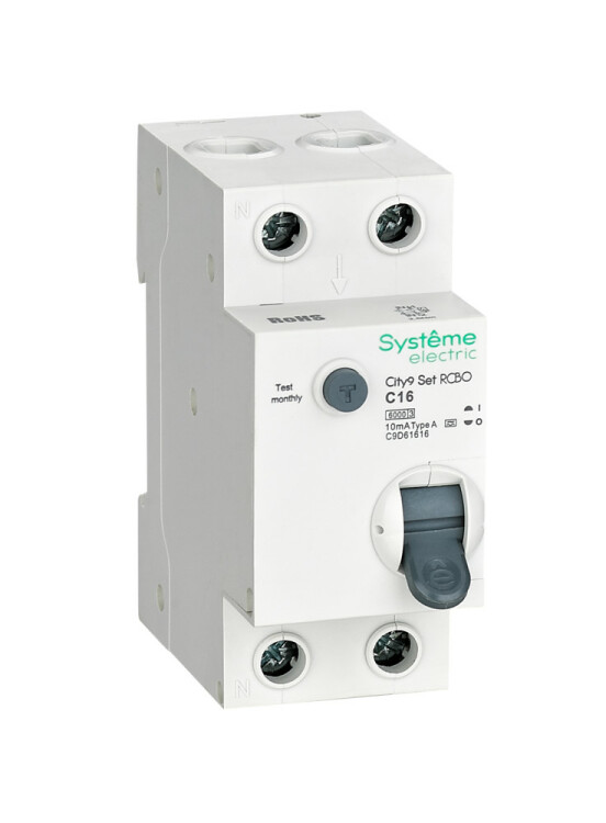Автоматические выключатели дифференциального тока (АВДТ) серии City9 Set Systeme Electric,1P+N, номинальный ток 16 А, характеристика С, Icn = 6 кА, ток утечки 10 мА, тип А. АВДТ применяется в электрических сетях напряжением 230В. Предназначен для защиты сети от перегрузок, людей от поражения электрическим током и токов короткого замыкания. Уставка по току утечки 10 мА обеспечивает гарантированную защиту людей при прямом прикосновении. Кнопка тест обеспечивает проверку работоспособности аппарата. Крепление на DIN-рейку шириной 35 мм. Безопасные клеммы