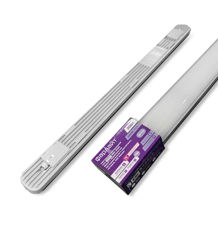 Светильники ССП собираются в линию при последовательном подключении их друг к другу с помощью переходников, которые идут в комплекте. Данная модель светильника отличается простым, быстрым монтажом и поставляется с комплектом для крепления. Корпус и рассеиватель светильника ССП сделаны из высококачественного поликарбоната, что делает его долговечным, позволяет оптимально распределять свет и делать освещение комфортным для глаз. Светильник Фарлайт мощностью 40 Вт излучает световой поток 4000 лм. Цветовая температура 6500 к – это холодный белый свет. Длина светильника - 1200 мм.