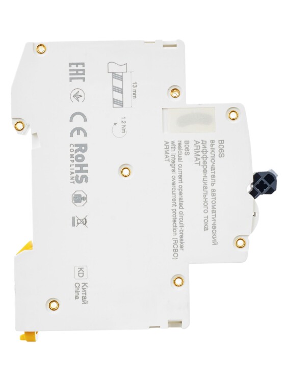 Автоматические выключатели дифференциального тока (АВДТ) ARMAT серии B06S могут осуществляют функции защиты от токов перегрузки и короткого замыкания и защиты человека от токов замыкания на землю. Модельный ряд включает в себя устройства с номинальными токами от 6 до 32 А, характеристиками срабатывания по сверхтоку B и C, типами защит AC и A с номинальным дифференциальным током отключения 30 мА. Номинальная отключающая способность АВДТ ARMAT серии B06S составляет 6 кА.
