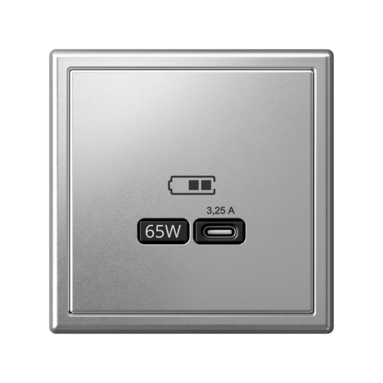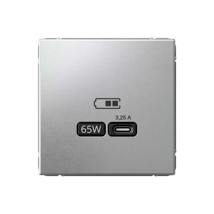 Розетка Systeme Electric серии ArtGallery в цвете алюминий USB с разъемом типа C высокоскоростная.