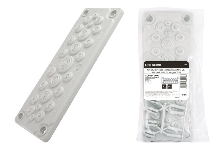 Применение:Электрощитовое оборудование с предварительно вырезанным отверстием для монтажа мембранного ввода. Комплектация:Крепление в комплекте.Материалы:Стальной каркас.Термопластический эластомер (ТРЕ) не поддерживающий горение. Преимущества:Большое количество вводов от 6 до 50.Высокая степень пыле и влаго защиты до IP65.Широкий диапазон вводимых проводников сечением от 5 до 59 мм.Широкий температурный диапазон от -30 до +130 С. Назначение:Для герметичного ввода проводов и/или кабелей в электрощитовое оборудование с целью защиты проводников от механического повреждения.Для защиты сборки от проникновения пыли и влаги в местах ввода.