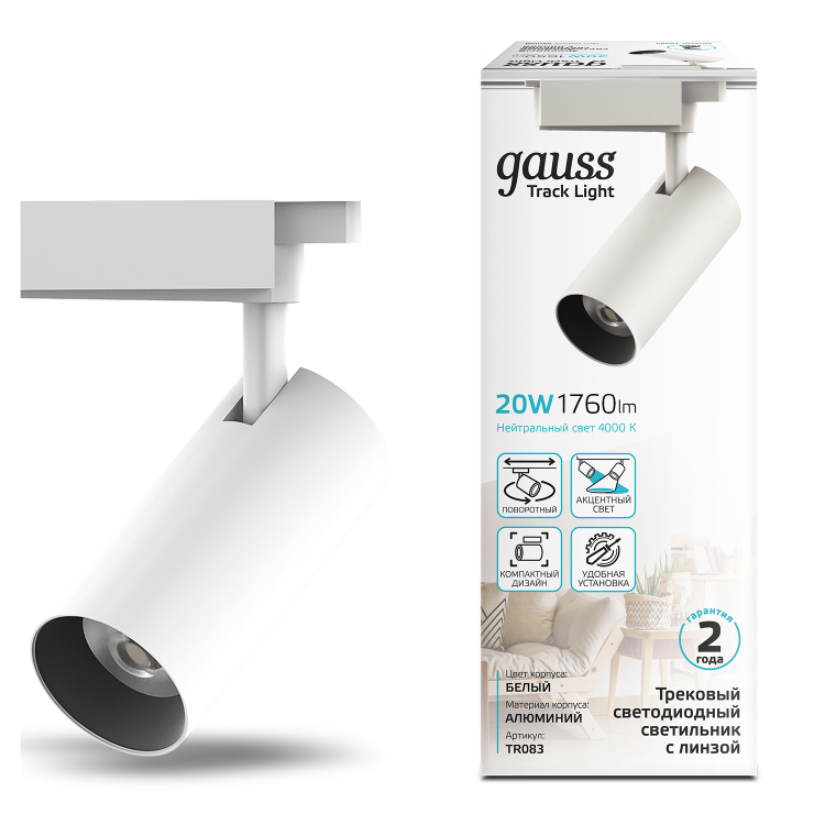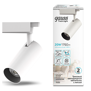Светильник трековый Gauss цилиндр 20W TR083 - компактный поворотный спот, предназначенный для акцентного освещения зон и предметов: картины, ниши, части интерьера требующие отдельного светового сценария. В комплексных трек-системах Gauss может выступать в роли основного освещения для минималистичных интерьеров и комнат с низкими потолками. Цвет белый, материал корпуса алюминий, материал линзы - сатиновое стекло. Внутри корпуса зеркальный рефлектор. У спота яркий направленный луч 36° 1760лм.