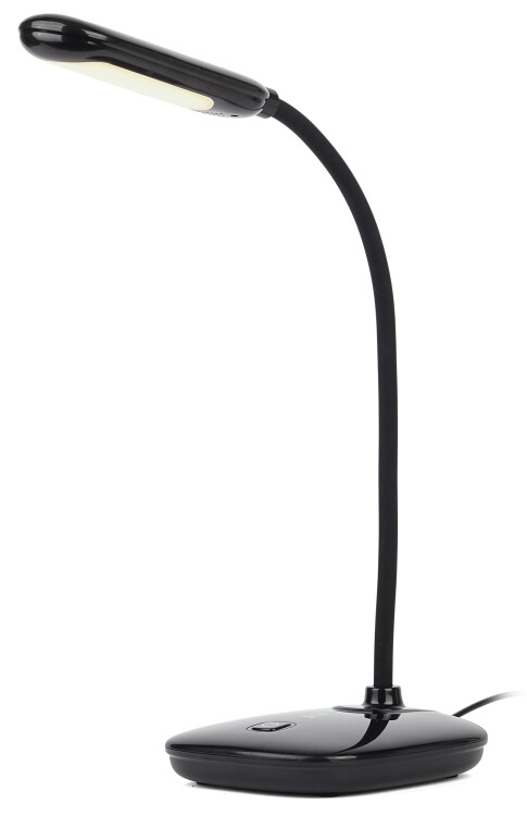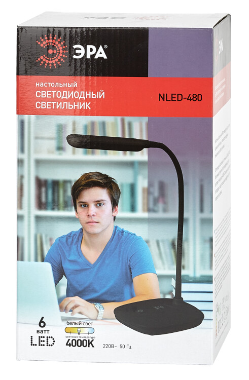 Настольный светильник ЭРА NLED-480-6W-BK со светодиодами (LED) в качестве источников света, компактного размера для оптимального размещения на столе, но удобной для работы высоты. У светильника выключатель на основании. Это базовая модель с оптимальным универсальным дизайном. Гибкая стойка позволяет выбирать наиболее комфортное направление света.