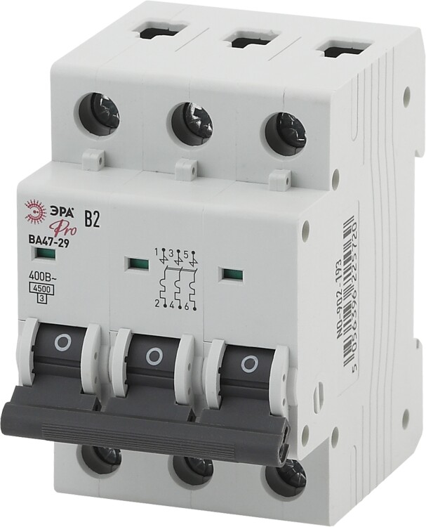 Автоматический выключатель ЭРА PRO NO-902-193 ВА47-29 3Р 2А кривая В 4,5кА(кр.1шт)