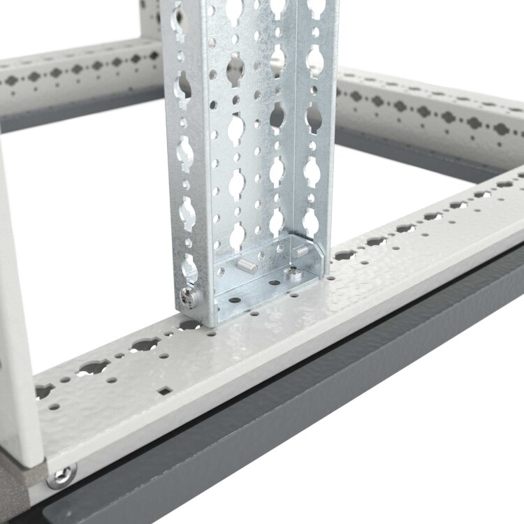 Широк ие вертикальные рейки используются для организации сборки универсальных конструкций внутри корпуса CQE N. Рейки изготавливаются из оцинкованной стали толщиной 1,5 мм. Максимальная статическая нагрузка на две параллельно смонтированные рейки составляет 180 кг