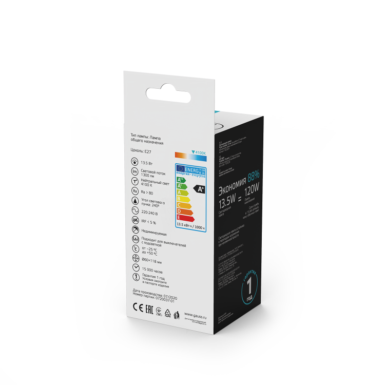 Благодаря энергоэффективной технологии LED, этой лампе нужно заметно меньше электроэнергии, чем обычным, что поможет снизить нагрузку на вашу сеть и эконо мить деньги на счетах.