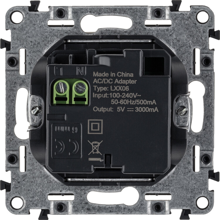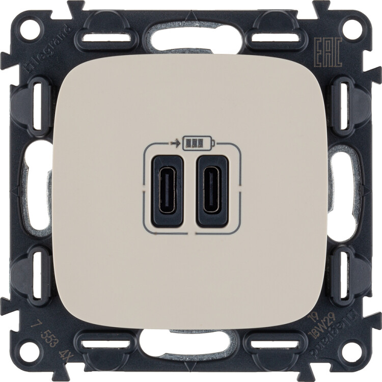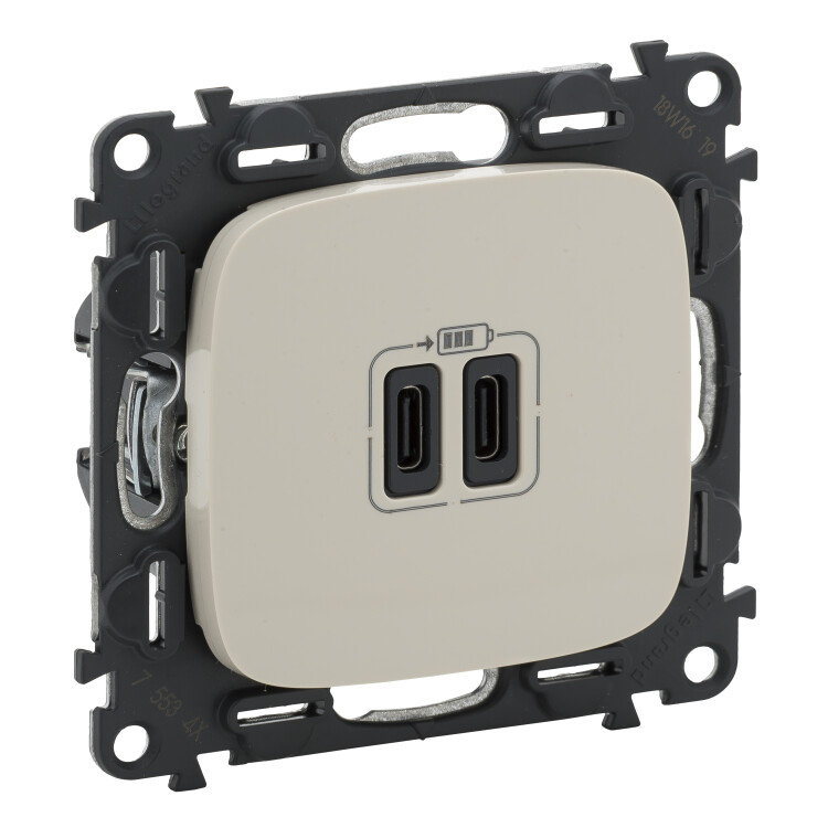 Valena ALLURE.Зарядное устройство с двумя USB-разьемами тип С-тип С 240В/5В 3000мА.С лицевой панелью.Цвет Слоновая кость