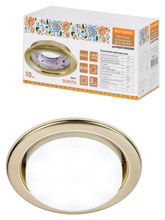 Светильники встраиваемые серии СВ (точечные) GX53 Народные предназначены для освещения жилой и коммерческой недвижимости, мест общего пользования.