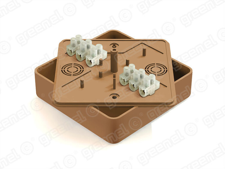 Коробка распределительная для наружного монтажа 100х100х29мм с клеммной колодкой ЗВИ-10 (2,5-6мм2) 6 клемм, IP40, цвет -ОРЕХ (42шт), ТМ GREENEL (кр.42шт)