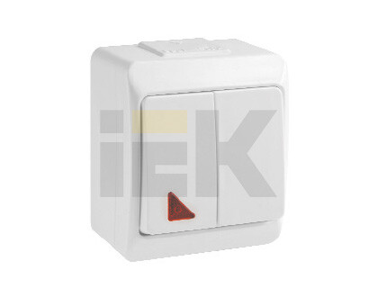 Выключатель двухклавишный для открытой установки со свет. индикацией ВС20-2-1-ГБ IP44 серия "ГЕРМЕС" (цвет клавиши: белый) (кр.12шт)