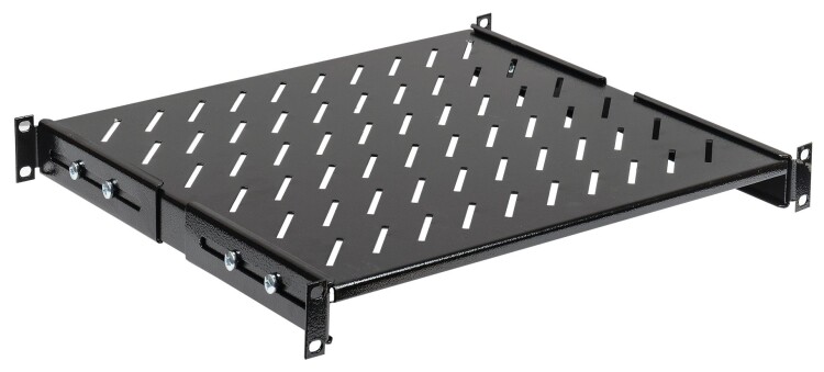 Полки для шкафов и стоек ITK предназначены для размещения на них внутри шкафа оборудования, приборов и аппаратуры, не имеющих кронштейнов и уголков крепления на 19" профили напрямую. К такому оборудованию относятся аккумуляторные батареи, не стоечные ИБП, KVM-консоли, измерительные приборы, медицинское оборудование и прочее. Стационарные полки рассчитаны на тяжелое оборудование с постоянным статичным размещением, крепятся как на фронтальные, так и на задние профили, имеют перфорированную поверхность для обеспечения лучшего охлаждения и отведения теплых воздушных потоков. Ушки, с помощью которых полки крепятся к монтажным профилям, могут регулироваться спереди и сзади в пределах 50 мм, что позволяет увеличить глубину полки на 100 мм и упрощает ее установку внутри шкафа. В зависимости от величины статической нагрузки в ассортименте стационарных полок ITK представлены обычные стационарные и усиленные стационарные полки.