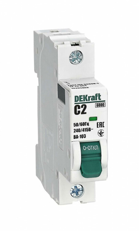 Автоматический выключатель серии ВА-103 NEW DEKraft; 1P; номинальный ток 2 А; характеристика C; отключающая способность 6 кА, что позволяет использовать аппараты в качестве вводных. 5 монолитных заклепок повышают прочность корпуса аппарата. Окошко-индикатор всегда показывает состояние контактов вне зависимости от положения рукоятки управления. Боковые каналы охлаждения повышают стабил ьность работы при высоких температурах окружающей среды. Есть возможность установки дополнительных аксессуаров с левой стороны устройства. Аппарат на 100% совместим с корпусами и оболочками DEKraft, Systeme Electric.