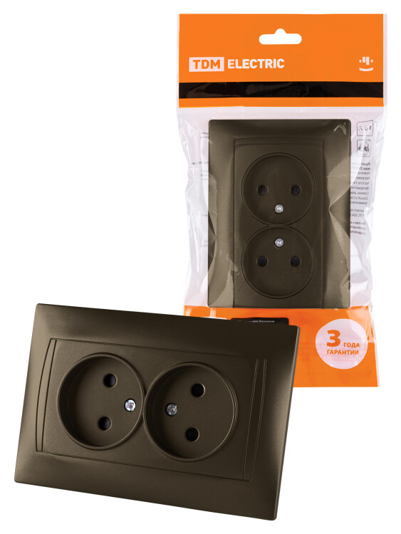 Розетка двойная 2П 10А 250В с защ. шт. бронза "Лама" TDM (кр.7шт)