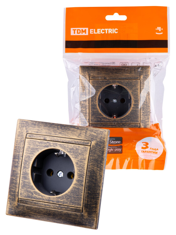 Розетка 2П+З 16А 250В старинная бронза "Лама" TDM (кр.10шт)
